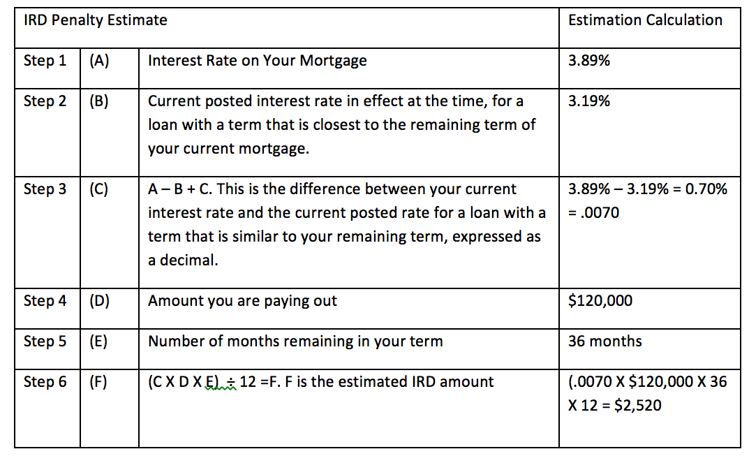 IRD is determined by calculating the difference between your current interest rate and your lender’s current posted interest rate for the term that is closest to the length of time that is remaining in your term. The difference is then multiplied by the mortgage balance and term.